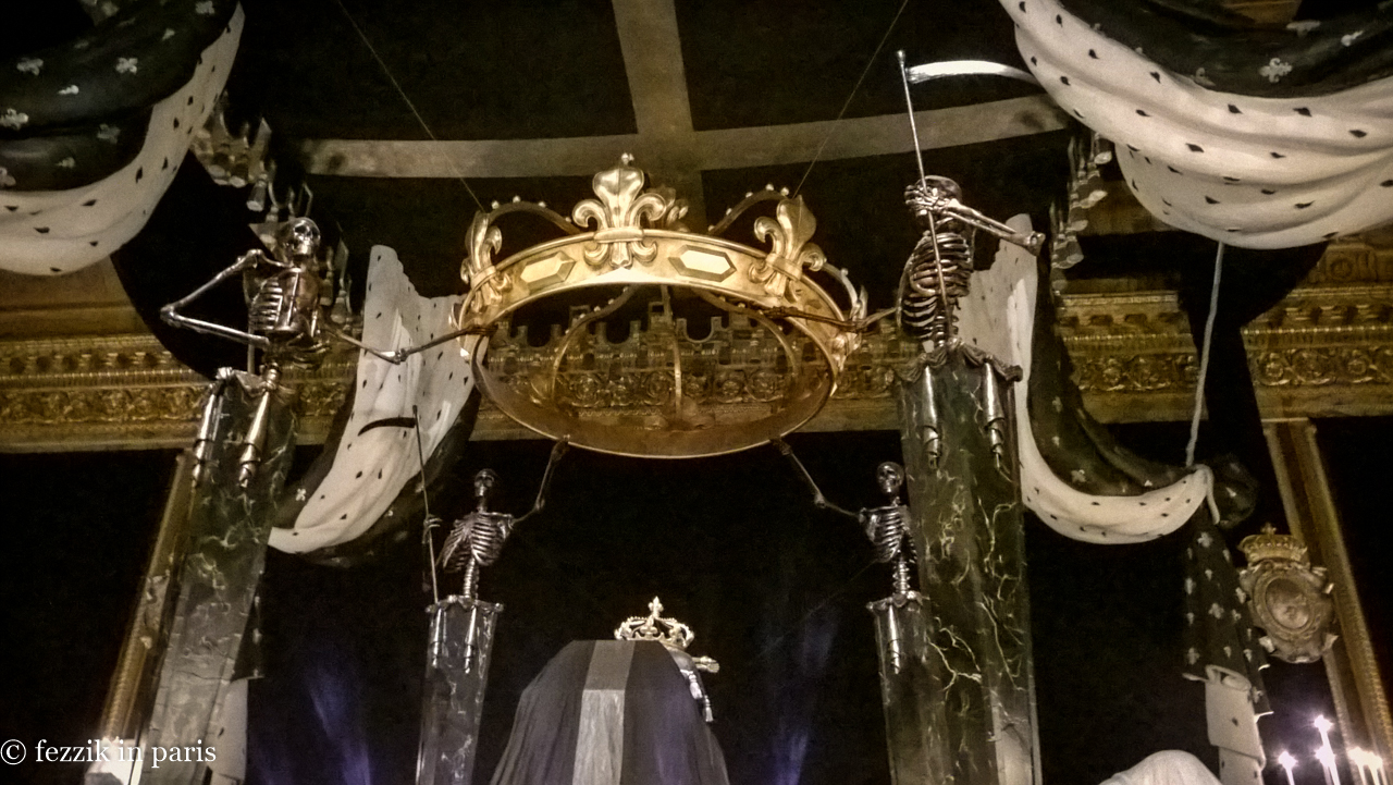 This reconstruction of the display of Louis XIV’s casket as he sat in repose in St-Denis made up the impressive first (and last) room of Le roi est mort, which covers the death, autopsy, funeral, and ultimate disposition (recall the St-Denis post of February) of the Sun King.