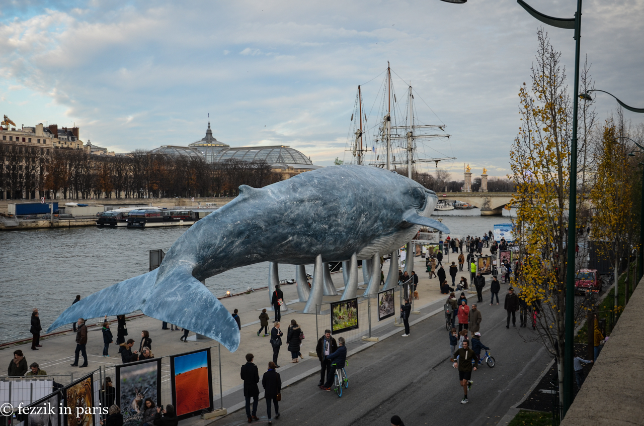 fezzikinparis-20151206-DSC_5390 December 10, 2015 by geepgeepgeep | 0 comments Per the accompanying signs, this is a 1:1 replica of a whale that was poked to death with sharpened sticks whaled at the turn of the 20th century; as it turns out, it is (was, really, being dead and all) the largest on record.